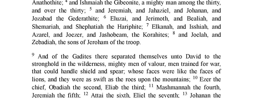 Welcome to the group! Here, you can post comments, questions, insights, and study notes on the Book of 1 Chronicles. (Full Text Below).